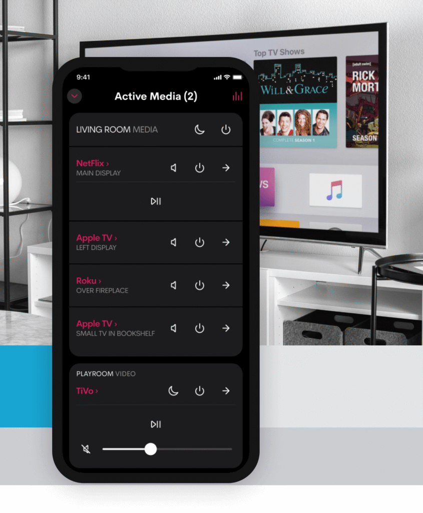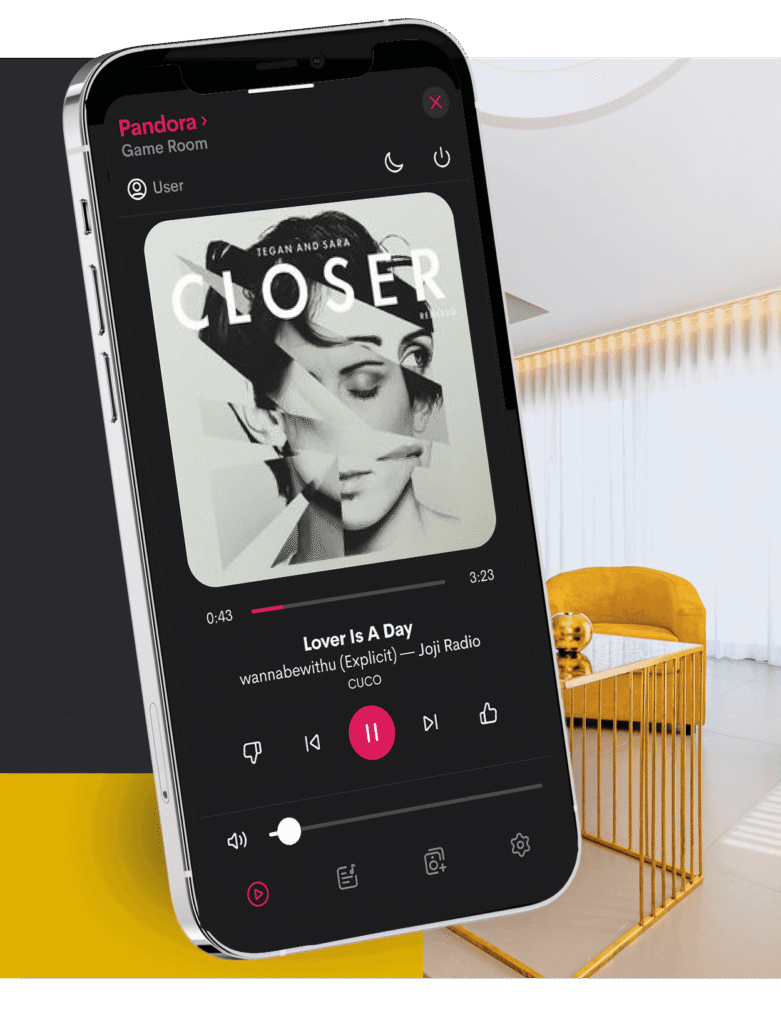 Our smart control system is simple, intuitive, and powerful. Seamlessly manage audio from room to room and connect with any smart device or music service. Integrated smart switches let you skip tracks, adjust volume, and fine-tune settings with a single touch. Customize playlists and audio settings in each room, schedule audio for routines, and even set automated alerts or announcements, giving you complete control—endless possibilities are always at your fingertips.